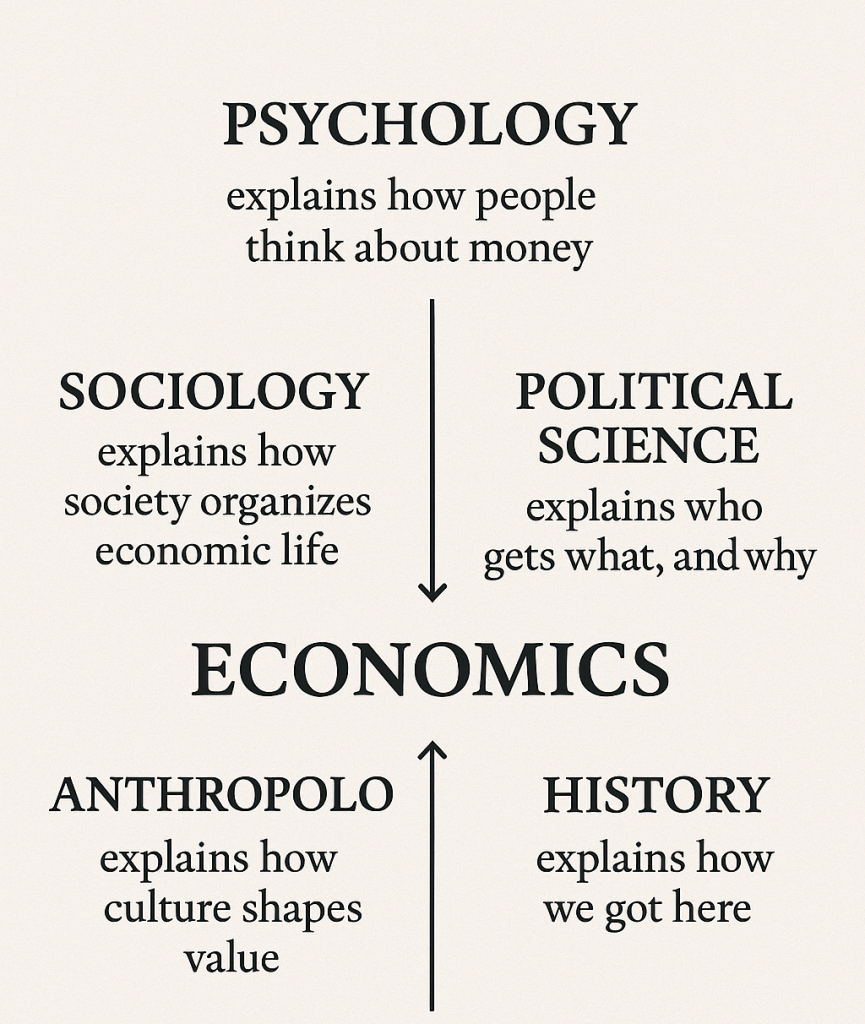 If economics were only about formulas, then AI would have already mopped all the money from the market. Machines can process data, but they can’t feel trust, panic, or euphoria, the real forces that move economies. Without having command over psychology, sociology, politics, and history, one can never understand true economics. The heart of economics lies not in numbers, but in human nature, unpredictable, emotional, and beautifully irrational.